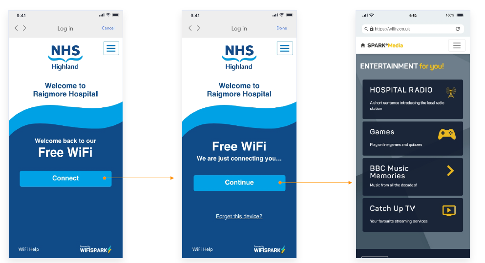 The Wi-Fi comes with content filtering and quality broadband. Once connected, patients have direct access to general internet services, email and entertainment platforms including Highland Hospital Radio.